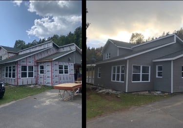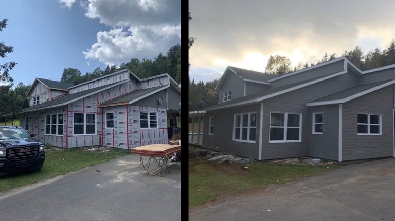 Remplacement du revêtement extérieur, fenêtres et isolation pour améliorer l'esthétique, l'étanchéité à l'eau et a l'air.