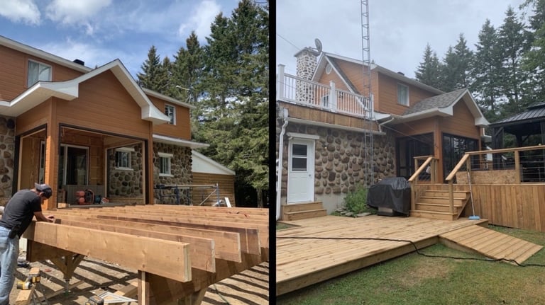 Conception et construction de terrasse et véranda en bois sur mesure, alliant solidité, esthétique et intégration harmonieuse à la résidence